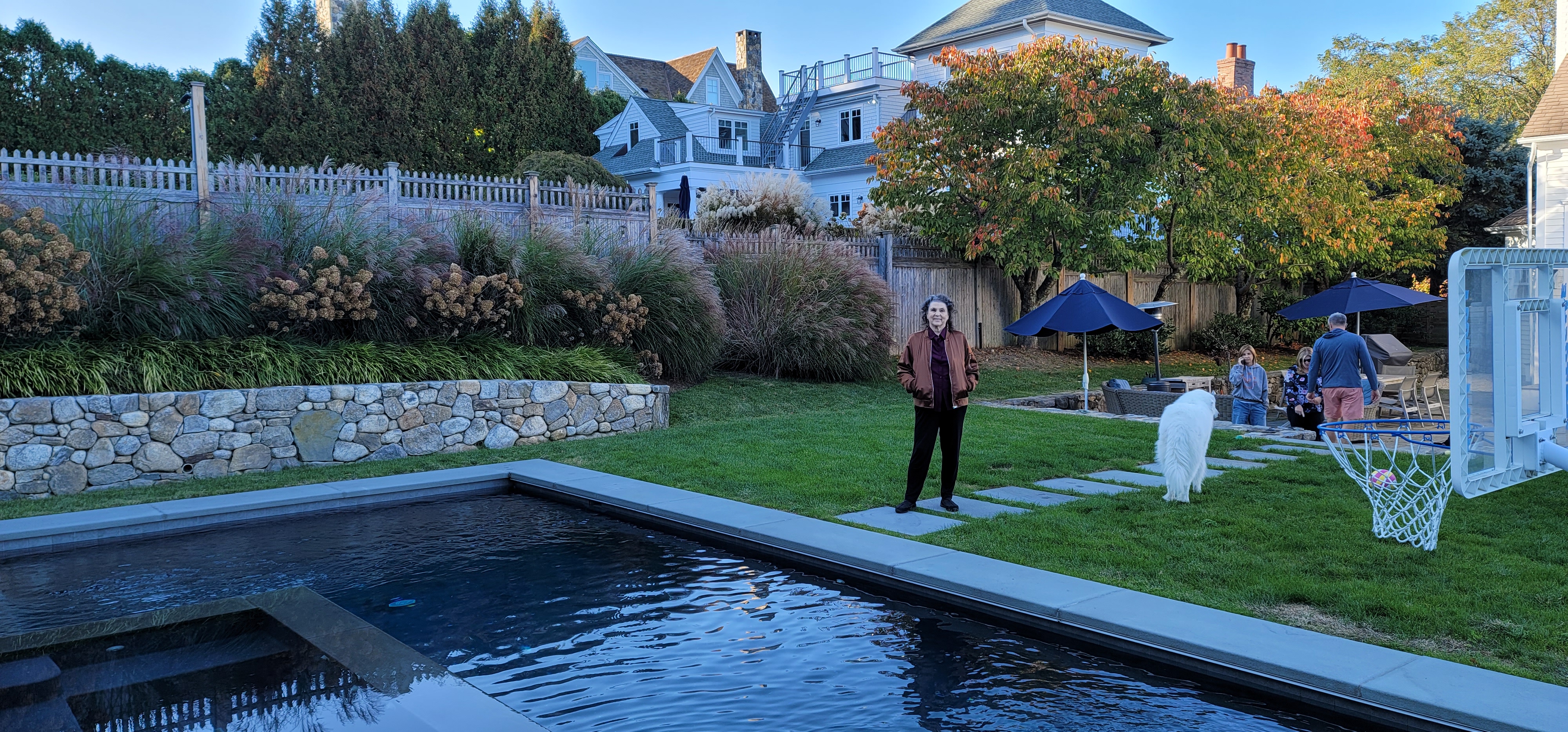 They exit the carriage house then cross over the old wooden footbridge to discover what had become of the electric blue seed (microchip) Sarah and Grandma Rose planted in the beginning of the story - marking the spot with a white stone.
