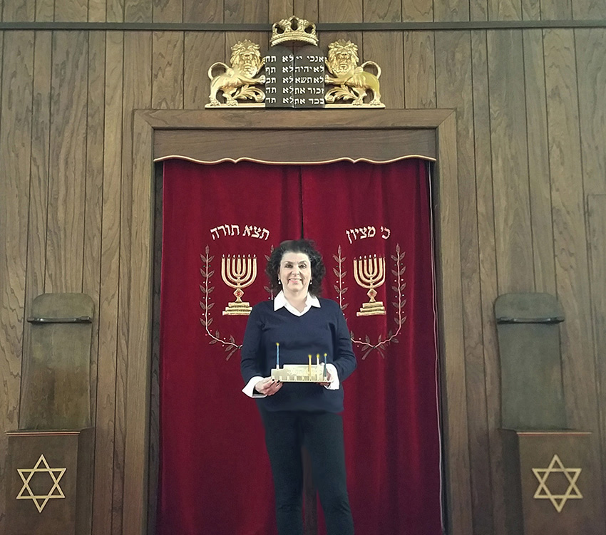 Happy Hanukkah Day 3 - Ellie lighting the candles in Temple