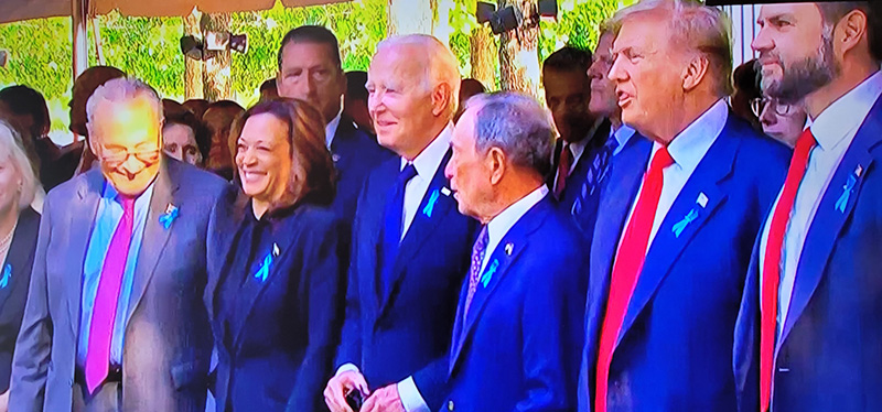 Harris and Trump shake hands at New York 9/11 remembrance ceremony on 23rd anniversary of attacks