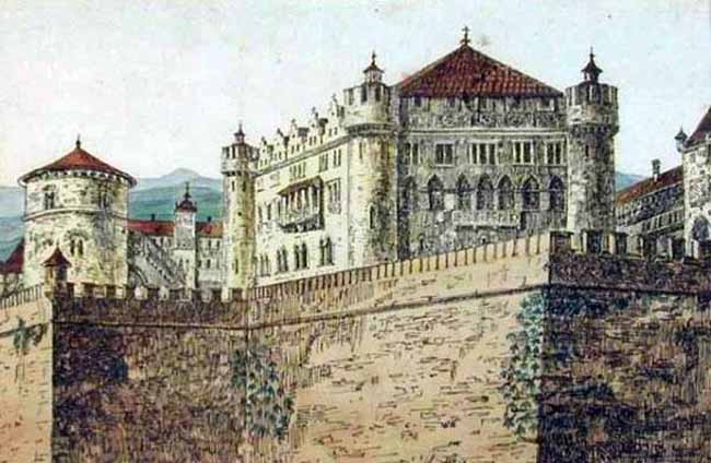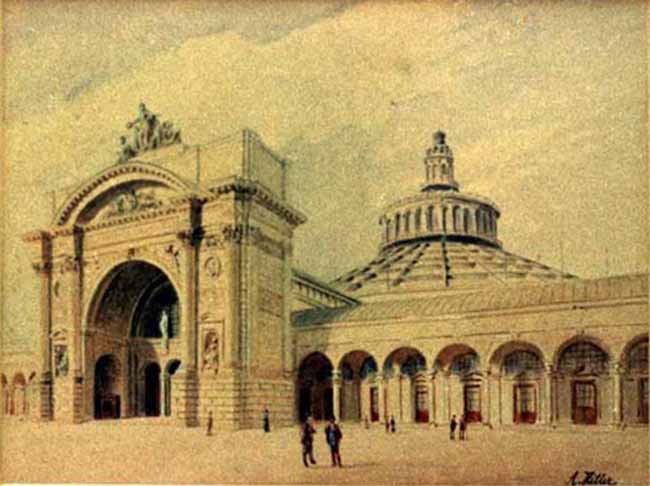 From a large car park a 124 m (407 ft) entry tunnel leads to an ornate elevator which ascends the final 124 m (407 ft) to the building. Its car is surfaced with polished brass, Venetian mirrors and green leather. Construction of the entire project cost the lives of 12 workers. The building's main reception room is dominated by a fireplace of red Italian marble presented by Italian dictator Benito Mussolini, which was damaged by Allied soldiers chipping off pieces to take home as souvenirs. Much of the furniture was designed by Paul Laszlo.