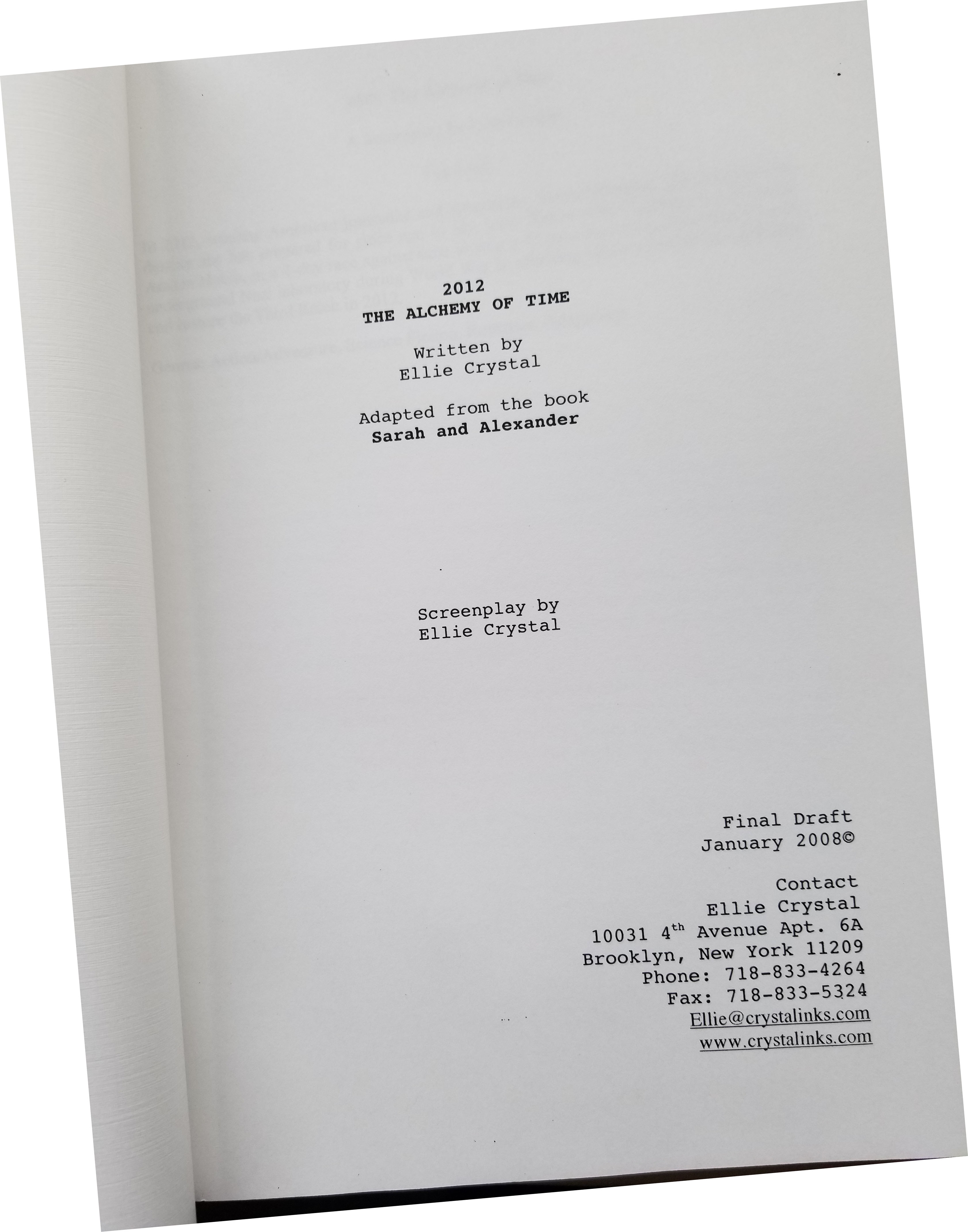 Though Michael's major and passions take him to Communication and Finance he finds writing very easy. He wrote the script in just a few days. Like me he is a storyteller but is much better at descriptive writing. As to my screenplay "Sarah and Alexander" - the original version ended on July 4, 2012 - the day scientists at CERN found the Higgs Boson. That version of my script got as far as Steven Spielberg's readers but it never reached his desk.