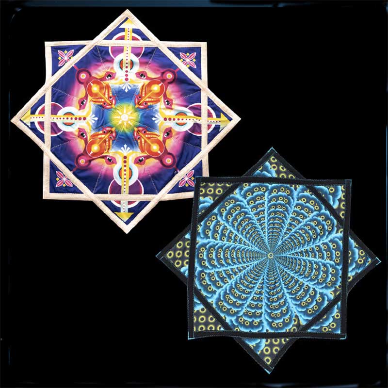 The designs remind me of a mandala or kaleidoscope (spin).