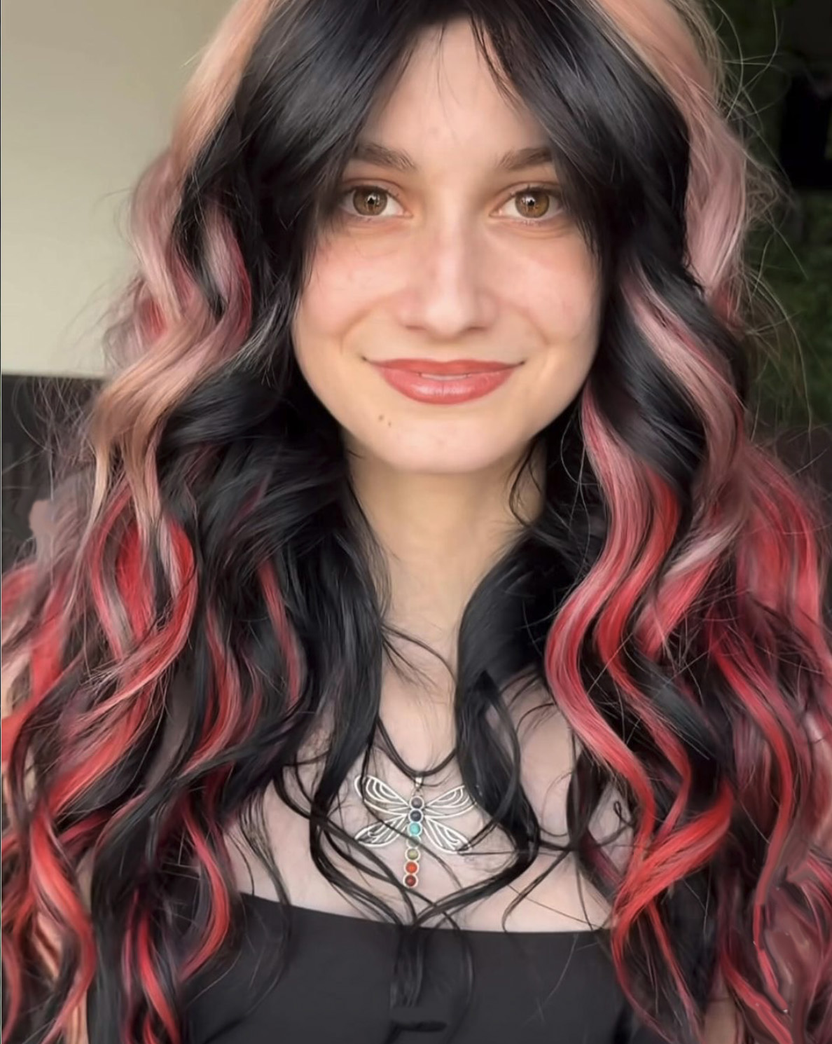 My granddaughter Joie modeled hair extensions and a dragonfly and chakra necklace.