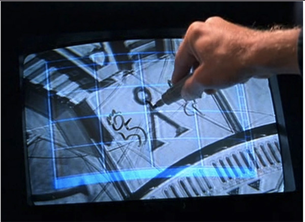 The keyhole symbol reminds me of the film Stargate SG1 when Daniel Jackson draws the Seventh Symbol or Point of Origin - a triangle with a circle on top activating the stargate that had been "buried for all time".