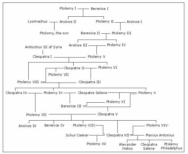All the male rulers of the dynasty took the name Ptolemy. Ptolemaic queens, some of whom were the sisters of their husbands, were usually called Cleopatra, Arsinoe or Berenice. The most famous member of the line was the last queen, Cleopatra VII, known for her role in the Roman political battles between Julius Caesar and Pompey, and later between Octavian and Mark Antony. Her apparent suicide at the conquest by Rome marked the end of Ptolemaic rule in Egypt.