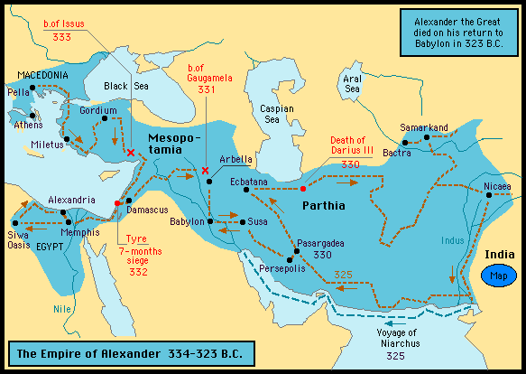 In 332 BC Mazaces handed over the country to Alexander the Great without a fight. The Achaemenid empire had ended, and for a while Egypt was a satrapy in Alexander's empire. Later the Ptolemies and the Romans successively ruled the Nile valley.