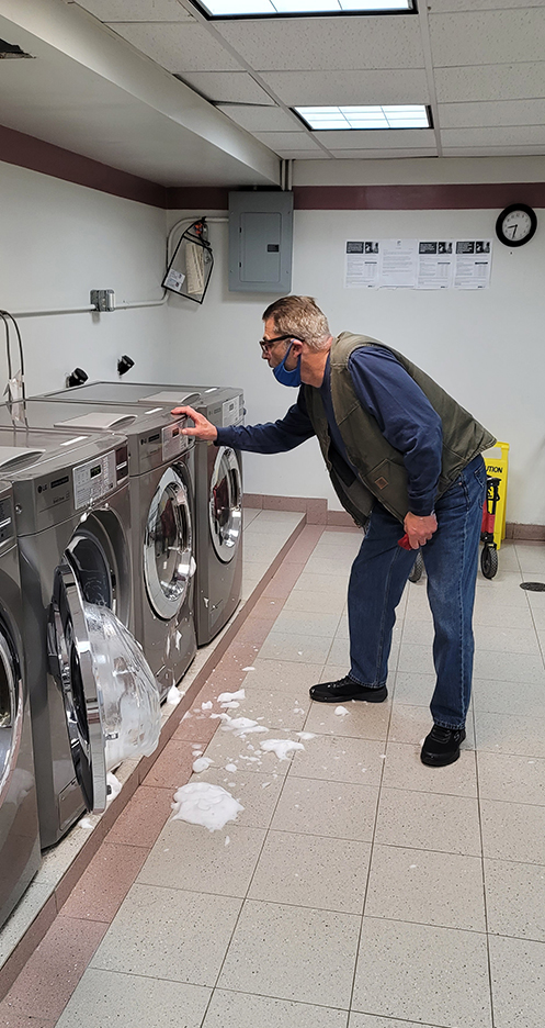 Meet my neighbor Sal a really funny cool guy. This morning as I went to take my wash out of the dryer ... there he was staring impatiently at a washing machine waiting for 'the cycle' to finish (not a metaphor). "It's been on '8 minutes' forever," he said in disgust. We chatted for a bit and it still read 8 minutes. Suddenly the whole thing exploded with bubbles as the door popped open. Life just gets more ridiculous every day. You've got to have a good sense of humor in today's world. Ellie taking her wash and going home as Sal moved his wash to the next machine!