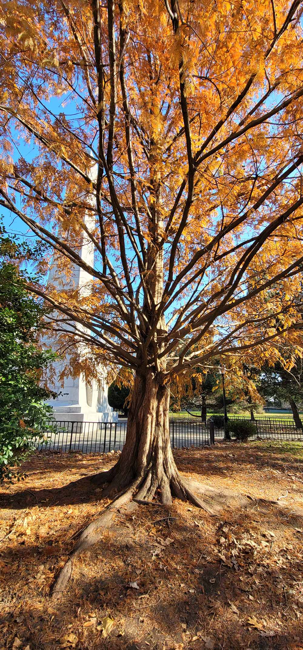 Pic of a tree in the park outside as it goes into a stage of deep sleep called winter dormancy