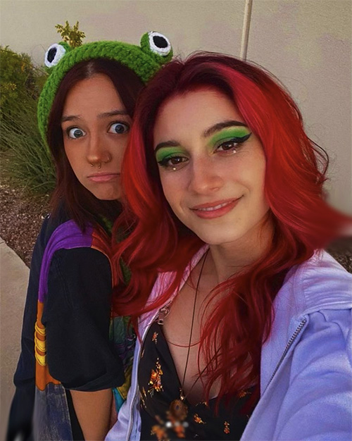 Granddaughter Joie and her friend take a selfie at Mardi Gras