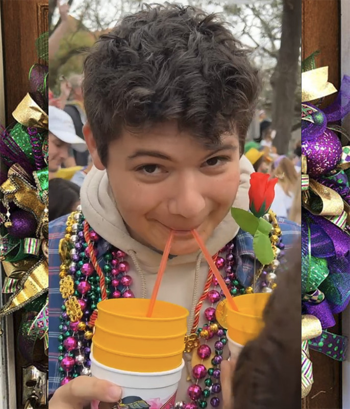 Grandson Matthew, a Freshman at Tulane enjoying Mardi Gras with friends