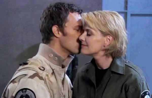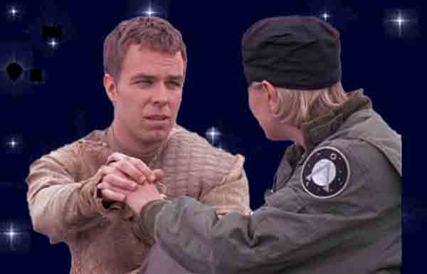Martouf the Alien (J. R. Bourne) and Samantha Carter from Earth (Amanda Tapping) saying goodbye ... again.