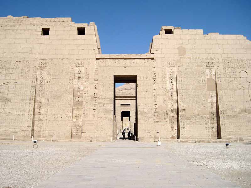 Medinet Habu is the name commonly given to the Mortuary Temple of Ramesses III, an important New Kingdom period structure in the location of the same name on the West Bank of Luxor in Egypt. Aside from its intrinsic size and architectural and artistic importance, the temple is probably best known as the source of inscribed reliefs depicting the advent and defeat of the Sea Peoples during the reign of Ramesses III.