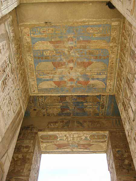 In Coptic times, there was a church inside the temple structure, which has since been removed. Some of the carvings in the main wall of the temple have been altered by coptic carvings.