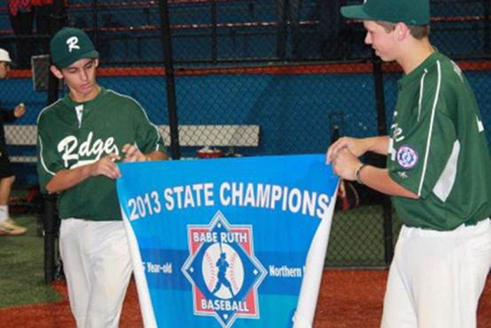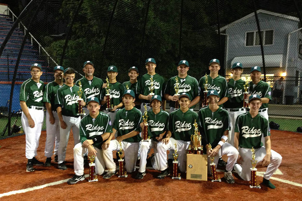 With Ridge 15U pitcher John Fasciano keeping their Secaucus opponent's bats quiet in the Babe Ruth State Tournament on Thursday night, hitters on the team moved relentlessly ahead to 11-1 victory at Kane Stadium. The Ridge Baseball 15U team advances to the 2013 Middle Atlantic Region Babe Ruth Baseball 13-15 Tournament to begin in August in Atlantic Cityl.