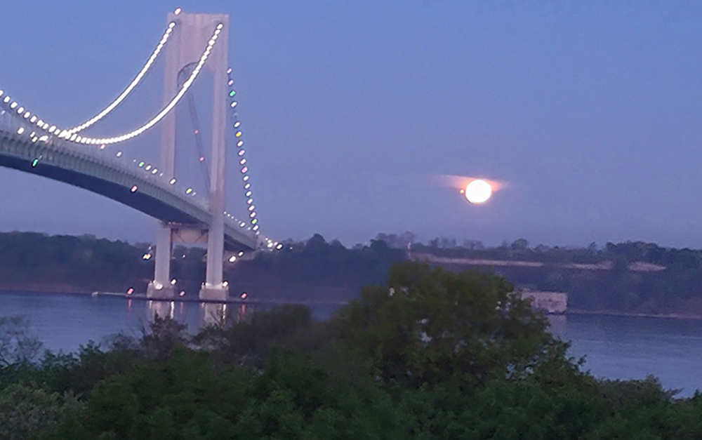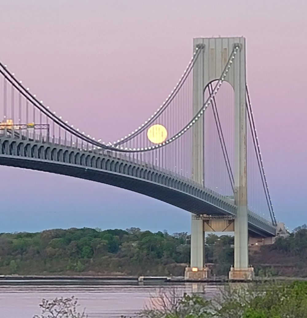 The Moon, the Bridge, and the Pink-Lavender Sky