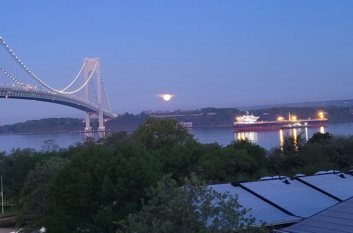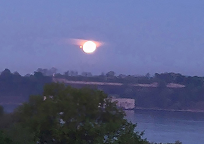 Friday May 5, 2023 - The energies and bright orange color of the Full Moon in Scorpio (water) - hours before it eclipses - captured my attention so I stepped out onto the terrace to capture its beauty.