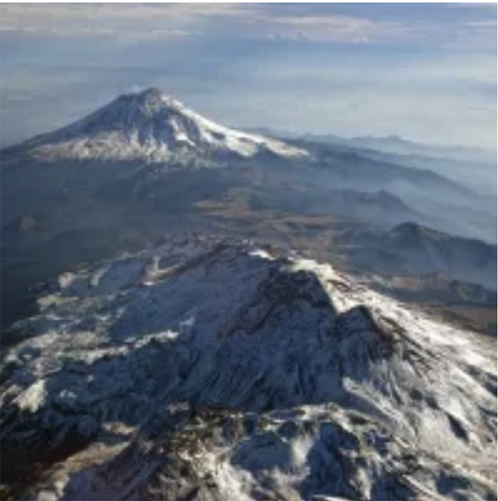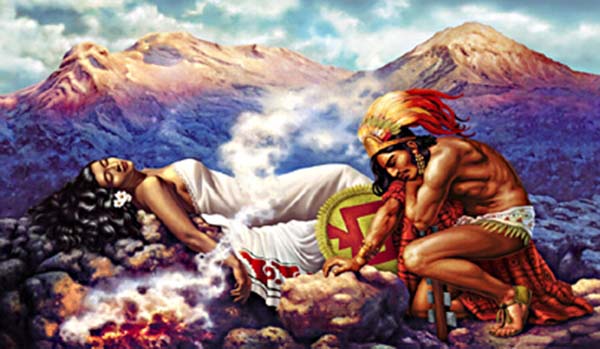 Popocatepetl and Iztaccihuatl are vocanoes that overlook the Valley of Mexico. In mythology Iztaccihuatl is a "sleeping woman" while Popocatepetl is a warrior.