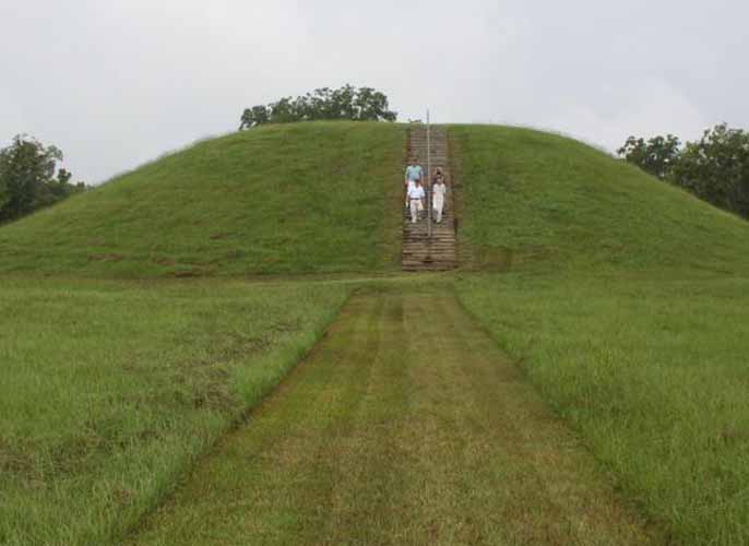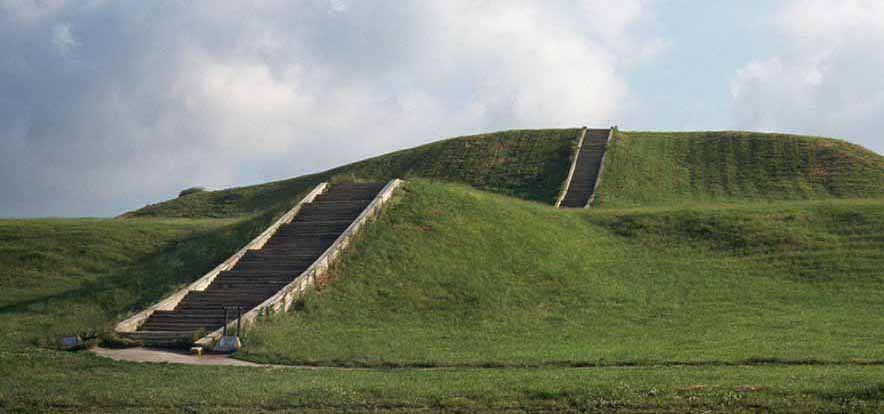 The six flat-topped earthen knolls and a plaza were used for rituals by several thousand Native Americans between 1000 and 1500 A.D. The largest mound has a height of 63 feet. Only nine percent of this site has been excavated, but we already know that the mounds have caves underneath them as do some Mayan and Giza pyramids.