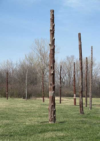 Cahokia Mounds State Historic Site is located on the site of an ancient Native American city (c. 600-1400 CE) situated directly across the Mississippi River from modern St. Louis, Missouri. This historic park lies in southern Illinois between East St. Louis and Collinsville. The park covers 2,200 acres (890 ha), or about 3.5 square miles, and contains about 80 mounds, but the ancient city was actually much larger. In its heyday, Cahokia covered about six square miles and included about 120 human-made earthen mounds in a wide range of sizes, shapes, and functions.