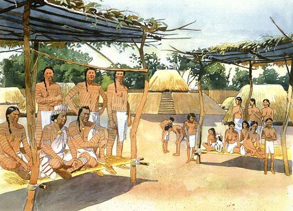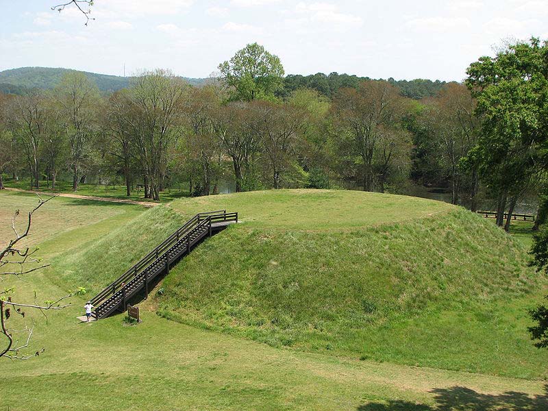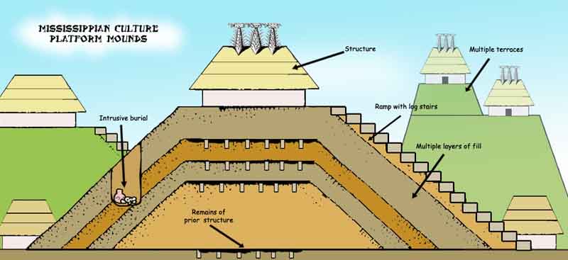 Periodically, the Mississippians would raze one of the wood-and-mud structures, bury the remains of a deceased leader in a fresh layer of earth, and erect a new building on top. Commonly, the well-to-do were laid to rest in specially built burial mounds, conical or round.