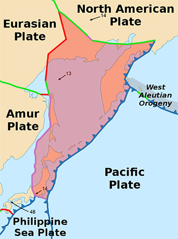 Earth Changes: North Korea is hitting areas near the Pacific Plate. You know what that means. The Pacific Plate is already breaking up. Nuclear attacks will accelerate the process as the Pacific Plate splits apart causing the predicted tsunamis -> the ripple effect to other tectonic plates ... etc. etc. etc. ... more end time events - the Okhotsk Plate is bounded on the north by the North American Plate.