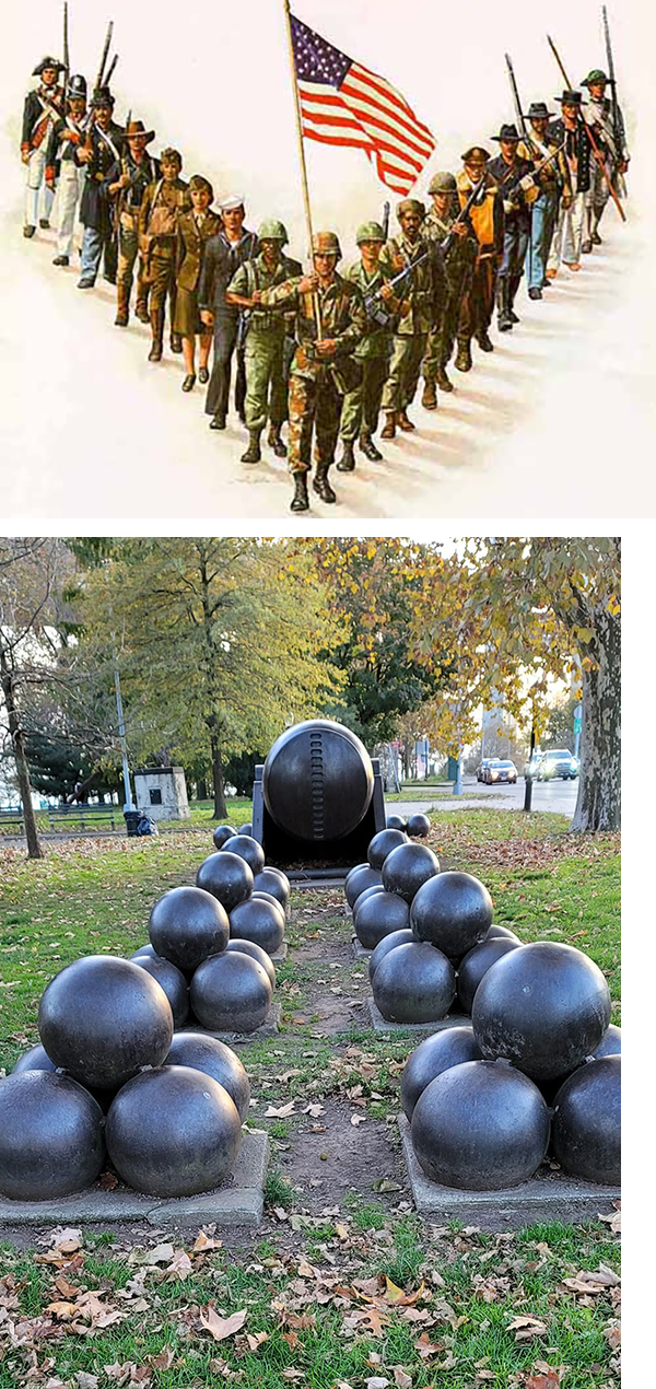 Present Day - The somewhat worn throw pillow is seen on the same sofa as in scenes one and two above. The pillow now belongs to another US military couple - the husband about to deploy to the Middle East - his bags beside the sofa as he kisses his wife goodbye. Sepia photos on a mantle depict the two couples in the first two scenes along with children of varying ages. At that moment I knew reality is coming full circle.