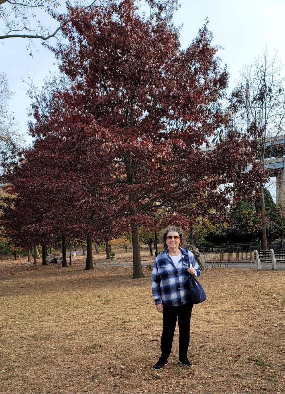 Out in the park I met a neighbor who took my pic with the six red trees we all love.