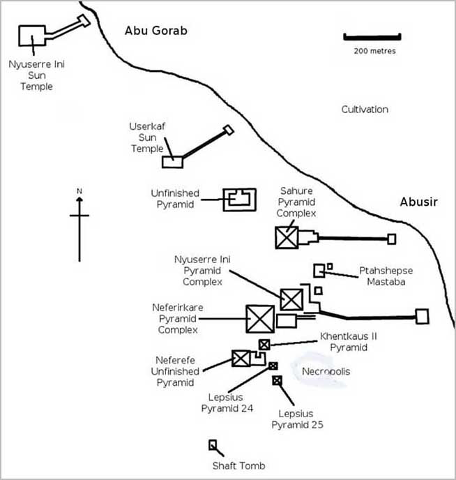 Abusir is one relatively small segment of the extensive "pyramid field" that extends from north of Giza to below Saqqara. The locality of Abusir took its turn as the focus of the prestigious western burial rites operating out of the then-capital of Memphis during the Old Kingdom 5th Dynasty. As an elite cemetery, neighboring Giza had by then "filled up" with the massive pyramids and other monuments of the 4th Dynasty, leading the 5th Dynasty pharaohs to seek sites elsewhere for their own funerary monuments.