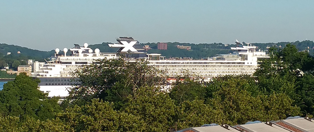 Sunday July 16, 2017 - The QE2 sailing past my window this morning.