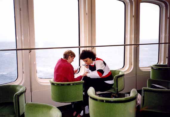 During the crossing, I read people from 40 different countries, using various tools of divination. Louise had fun organizing the lines of people which extended all the way down the hall, waiting for ten-minute readings. In 1991, consciousness was evolving in ways never experienced before as people were embarking on their own journey into awareness. The Internet, few years down the road, would accelerate the process, bringing it all together in/on the web.