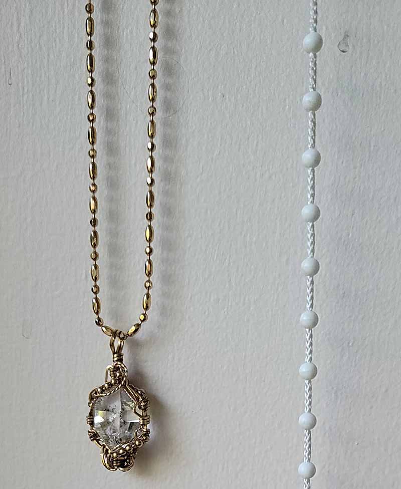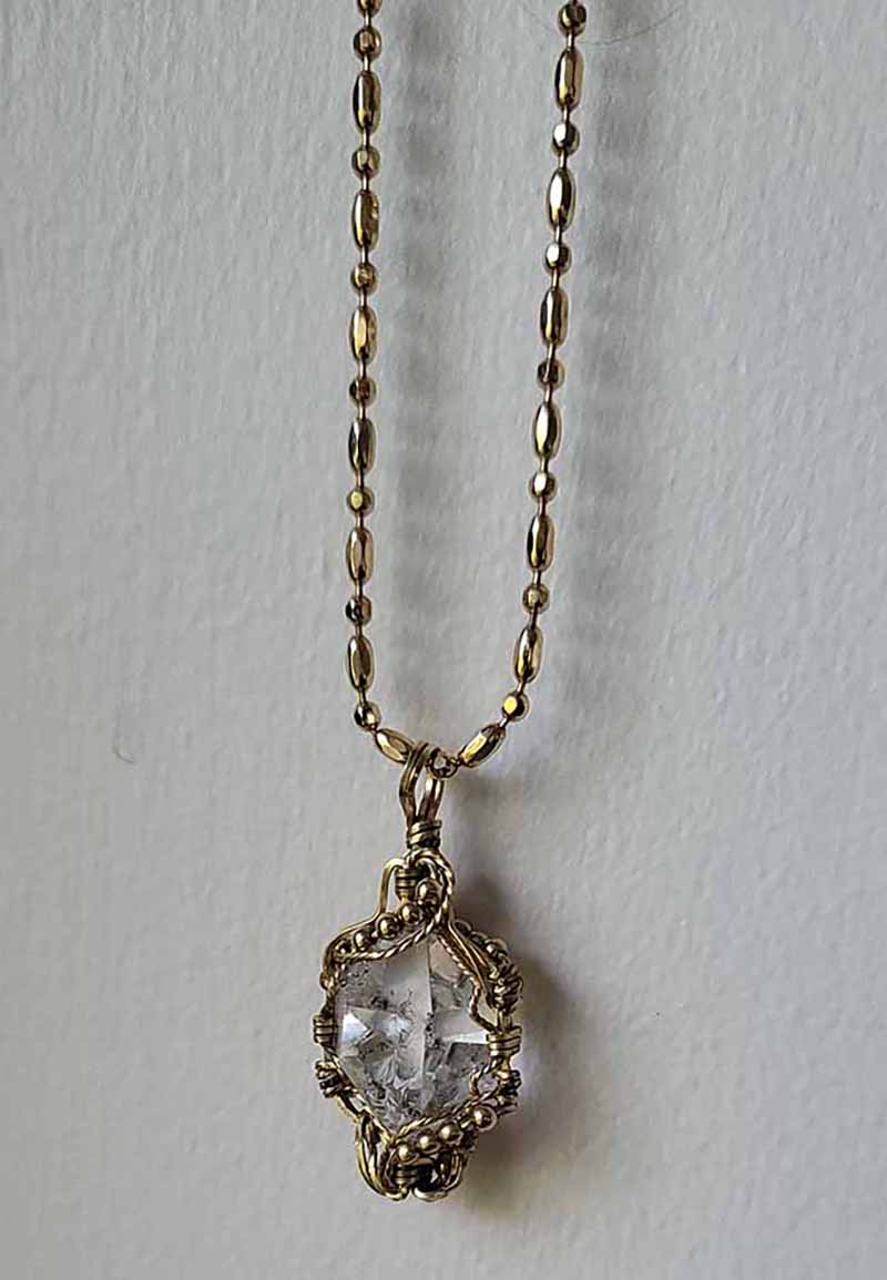 My energy grids align with Herkimer Diamonds mined in upstate (Herkimer) New York. Before they became popular - my friend Richie would drive upstate and bring back pouches of Herkimers allowing me to pick the ones that connected. I fashioned this crystal into a necklace set in 14k gold.