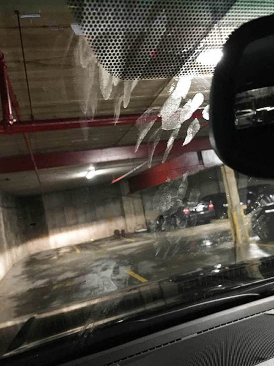 It would seem a raccoon is lose in the basement garage of my apartment building ... and the search is on to capture it. My friend Carmine, who lives in the apartment below me, and also parks in the garage, took this pic from inside his car this morning. He calls it Wolverine!! Look at the size of those paw prints on his windshield. It seems we have a raccoon problem as they move into the neighborhood New York City.