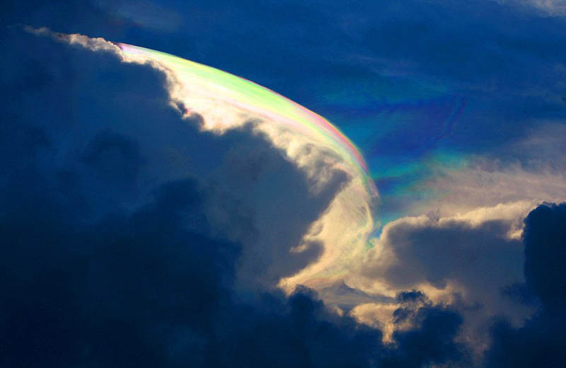 Mail Online - June 5, 2012A glowing cloud blossomed into a rainbow over southern China on 5 June, appearing at dusk over Wanning City in southern China in Hainan Province. The glowing 'rainbow' was spotted first by a child on a fishing boat, and captured by a local photographer. The rare effect is created by light refracting off ice crystals in clouds, rather than water particles close to Earth, creating a 'flying' rainbow. (Click link for more photos)