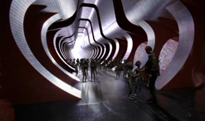 Hitler allegedly traveled through a wormhole or what some might see as a stargate. I have no memory of that as I had time traveled into Ellie Crystal's body. I have always remembered the sights and sounds of the wormhole or Einstein Rosen Bridge - different than the video below and much faster but just to give you an idea. When you time travel or teleport - the version of you at the Entrance Point A is never 100% the same as the Exit (Destination) Point B. Different inserts in the simulation.