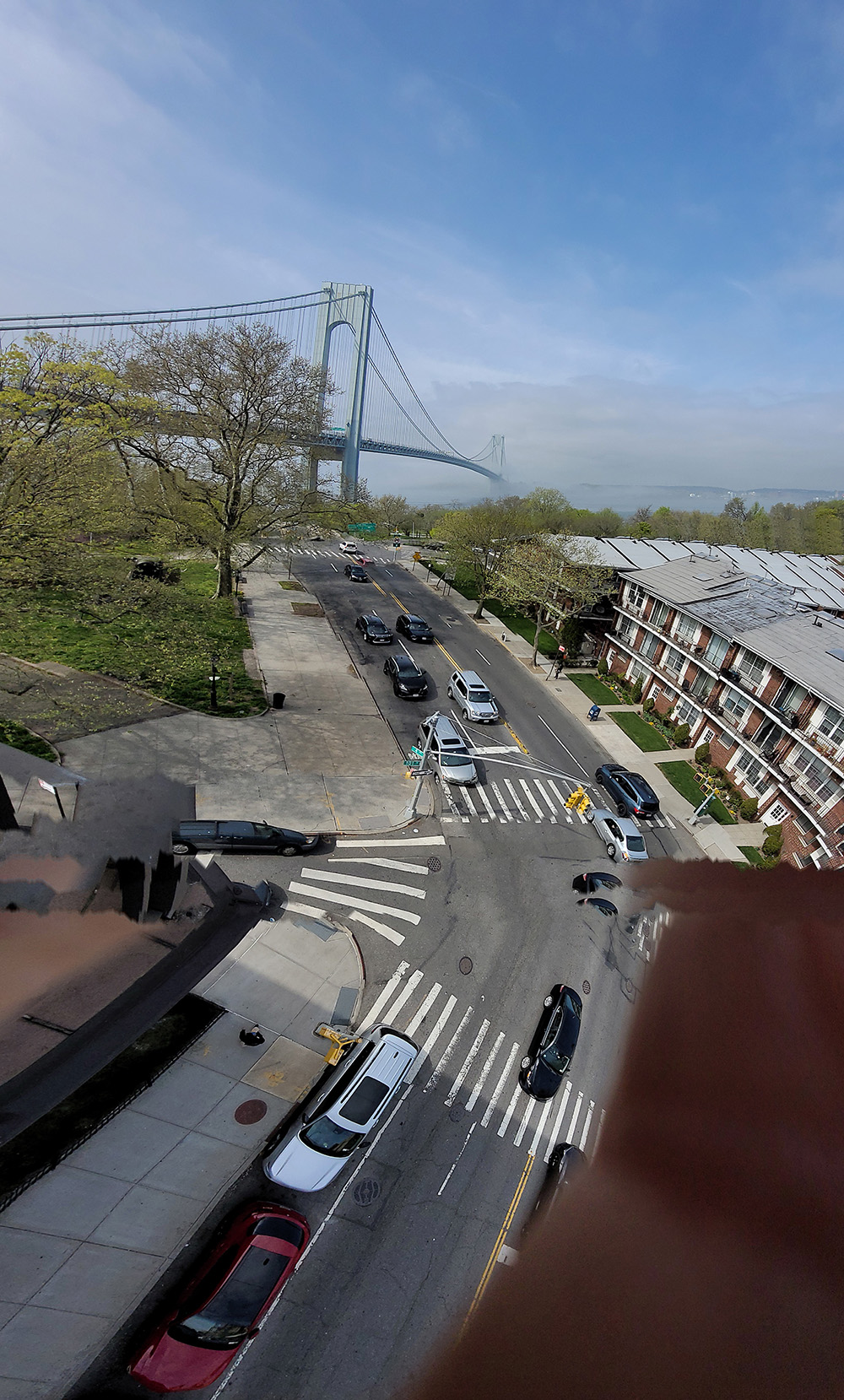 I stood on my terrace this morning watching the fog lift beneath the Verrazano Bridge. There was something in the quite of the early morning - seemingly surreal - that made me want to take a pic. Since I had captured a UFO drone in the lightning storm a few weeks ago - I never know what might show up 'between the spaces' as our illusion in time reveals its secrets.
