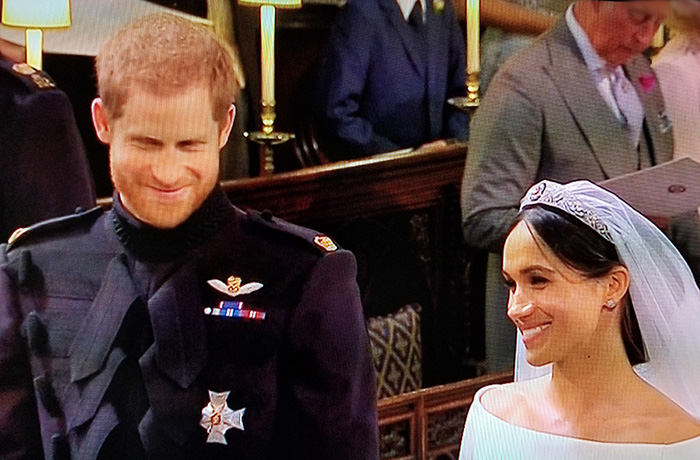 She smiled over at her mother Doria Ragland, then was greeted by Prince Charles who walked with her to join Harry at the altar. The expression on Harry's face as he looked at Meghan. Harry said, "You look amazing. I'm lucky."