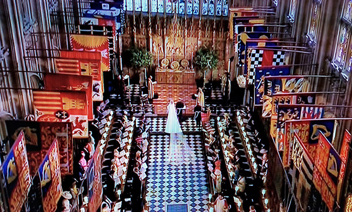 I woke up at 4:40 dreaming I was at the royal wedding. Time to watch my recording which had started at 4:00 featuring the crew from the Today Show Live from England. The weather was picture perfect as the guests arrived for the wedding. There was Oprah walking among other celebrities including the cast of Suits, who are like family to Meghan. Amal Clooney's yellow dress was my favorite, other than the bride's. Along came Harry and William looking regal in military dress. Alas here comes the bride as Meghan drove up.