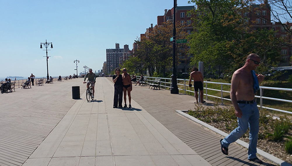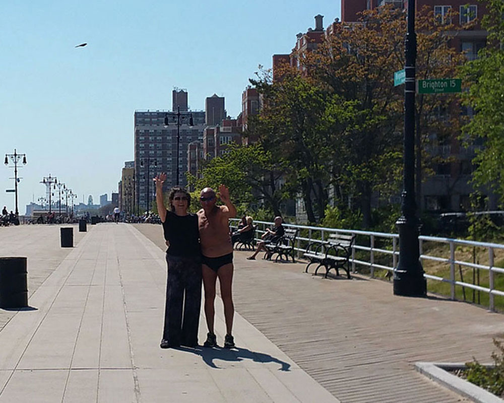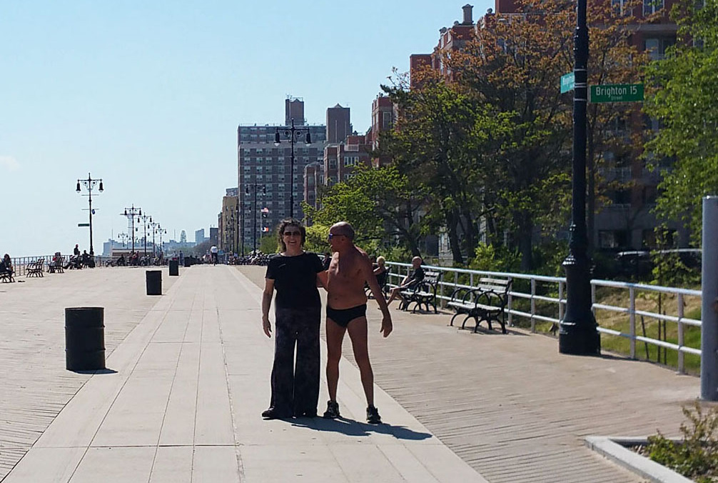 On a sunny spring day, Pat and I drove to Brighton Beach to walk on the Boardwalk starting at Bay 1.