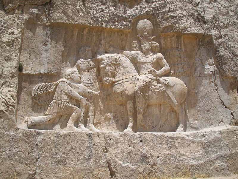 Roman emperor Valerian (standing) and Philip the Arab (kneeling), suing for peace
