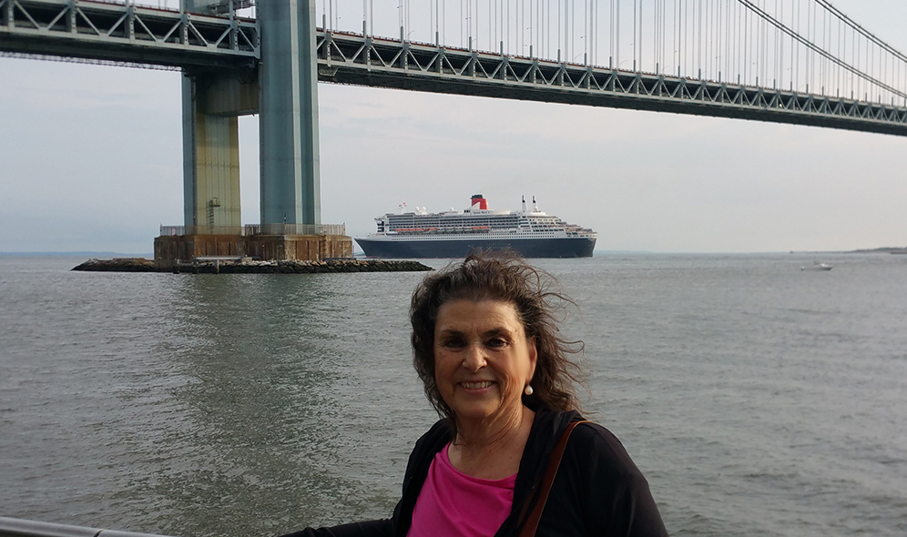 Late this afternoon I went to the promenade near my home to watch the ocean liners on their way to various destinations. While sitting on a bench I met the nicest couple - Kathy and Jim from Bay Ridge - my age - whose friends were on the Queen Mary 2 sailing off to England and beyond. We waved and took pics - sent texts - then sat and talked until the sun set. It's all water under the bridge.