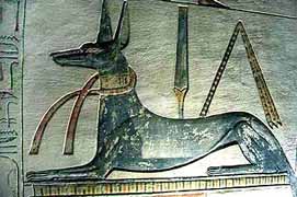 The only material item of funerary equipment found within KV47 was the red granite outer sarcophagus of Siptah. It is shaped like a cartouche, with the image of the king carved into the upper surface of the lid. He is flanked by figures of Isis and Nephthys and surrounded by a crocodile, a snake and a pair of cobras with human heads and arms. The sarcophagus box is decorated with alternating triple khekher-ornaments and recumbent jackals surmounting a register of underworld demons. This was a new composition that subsequently was used by other kings on their sarcophagi through the reign of Ramesses VI. Interestingly, there was no destruction of Siptah's name on his sarcophagus.
