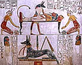 Inside this corridor on the northeast wall is a fairly well preserved depiction of Siptah addressing Re-Horakhty followed by the opening lines of the Litany of Re. Further text and scenes from these passages, including a scene of Anubis before the bier of Osiris, fill the remainder of this wall, the opposite wall, and then flow into the next corridor. On the ceiling of this first corridor we also find representations of a series of flying vultures.