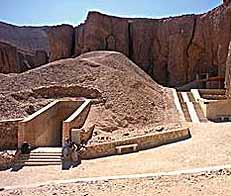 Though the first part of this tomb structure closely follows that of his father, Seti II, the rear sections are somewhat unusual. The initial opening corridor leading into the tomb is in the open air, and consists of a central ramp with two stairways of cut stone blocks imbedded into the bedrock to either side of the ramp. The first true corridor descends, leading to a second level corridor.