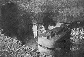 Here, we find a pair of beam slots used for lowering the sarcophagus. This corridor gives way to a third corridor that, like the first, descends once more. At the rear of this corridor are a pair of rectangular niches. Afterwards, we find the well room that lacks a shaft, followed by a four pillared chamber The tomb continues through the pillared chamber with a descending passage that leads into the first of two more level corridors before communicating with an antechamber. Normally, we might expect to find a corridor followed by a stairway before the antechamber.