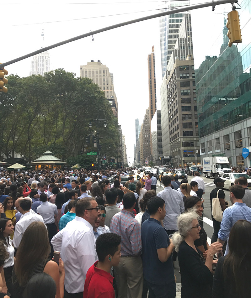 Below are pics taken in Manhattan by my daughter Nikki - and in Bay Ridge, Brooklyn taken by me and neighbors. What Nikki and I found was a feeling of sharing freely ... eclipse glasses, viewing boxes, and energies, with everyone. Nikki said this was the best Manhattan energy she has experienced in a long time. I felt the same about Brooklyn. People across the nation experienced the same camaraderie and fun. With everything going on in the Trump administration, this energy was greatly needed to bond people together and share their stories about the experience. (Video: Trump looks directly at the Sun) Everything that is happening now - for better or worse - is uniting consciousness. Perhaps this was not only a physical eclipse but an eclipse of consciousness and an indicator of that which unites us at the end, comes from above.