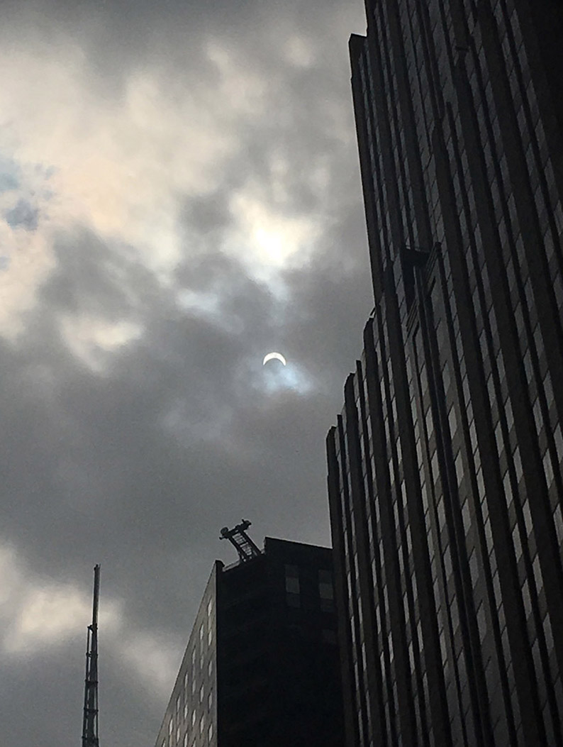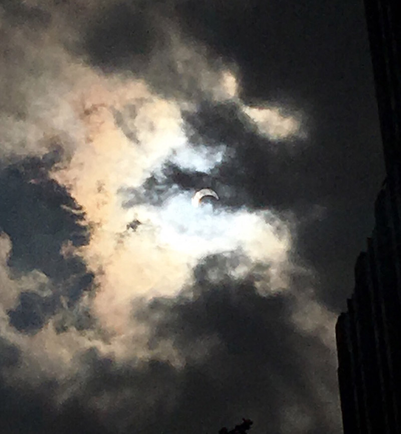 I went downstairs to experience the energies of the eclipse about ten minutes before the eclipse gave us 71% visibility in New York. Though I could have watched it from my terrace, but there was something about sharing the experience with neighbors that felt right.