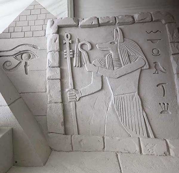 The foot of each sarcophagus reveals the pattern of the amulet etched in stone. When the amulet is placed into its matching counterpart - each sarcophagus opens to reveal first a female then a male but looking as they did when time began.