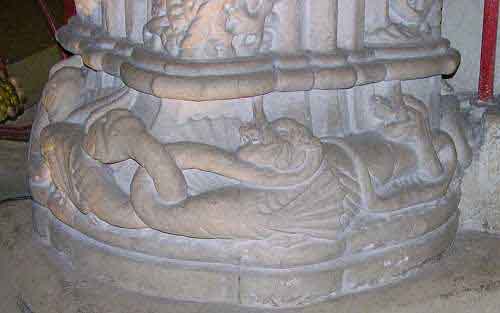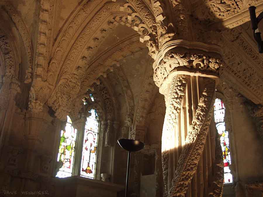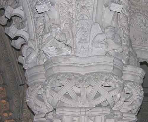1. Carved angels and blocks above their head in arches of chapel baffled Thomas until he realized this one was holding a musical stave - and that the blocks signified notes.