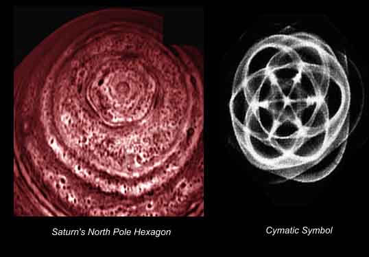 In space tonal frequencies create patterns based on Sacred Geometry. Stuart believes the harmonics of the Rosslyn Motet is linked to Saturn's North Pole Hexagon along the sacred architecture of Roslyn Chapel.