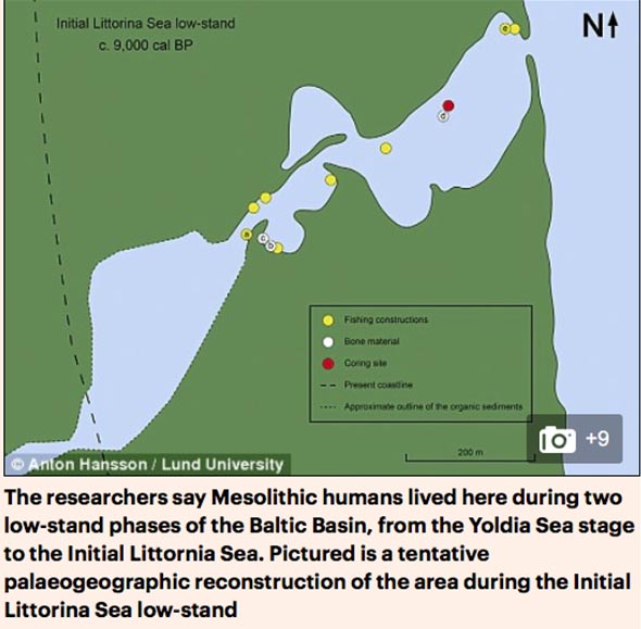 As humans have long preferred to live near the coasts, the researchers say submerged settlements such as this are common, due to rising sea levels that swallowed them in the later centuries. According to the team, this site off southern Sweden was likely once a lagoon environment surrounded by a pine-dominated forest. They say Mesolithic humans lived here during two low-stand phases of the Baltic Basin, from the Yoldia Sea stage to the Initial Littornia Sea.